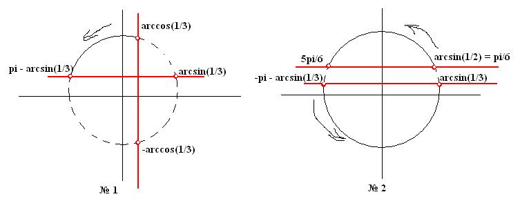 Получаем: π/6 + 2πk < x < 5π/6 + 2πk, -π - arcsin(1/3) + 2πk < x < arcsin(1/3) + 2πk