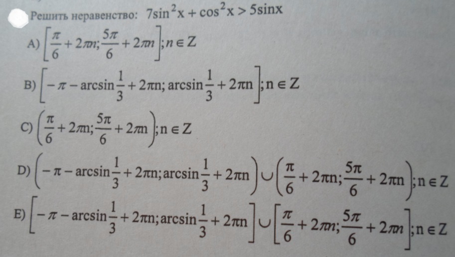 2) 7sin^2(x) + cos^2(x) > 5sinx
