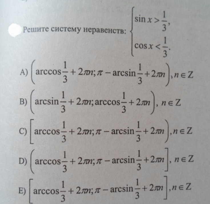 Получаем ответ: arccos(1/3) + 2πk < x < π - arcsin(1/3) + 2πk, k∈Z