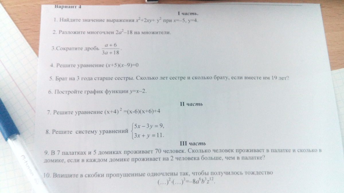пятое х-сестра х+3 брат х+х+3=19 2х=16 х=8