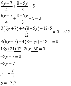 3(6y+7)+4(8-5y)-12*5=0 (знаминатель 12)