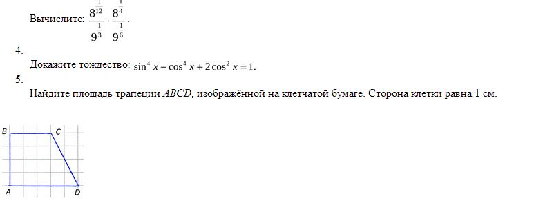 3)Найдите площадь трапеции ABCD, изображённой на клетчатой бумаге. Сторона клетки равна 1 см.