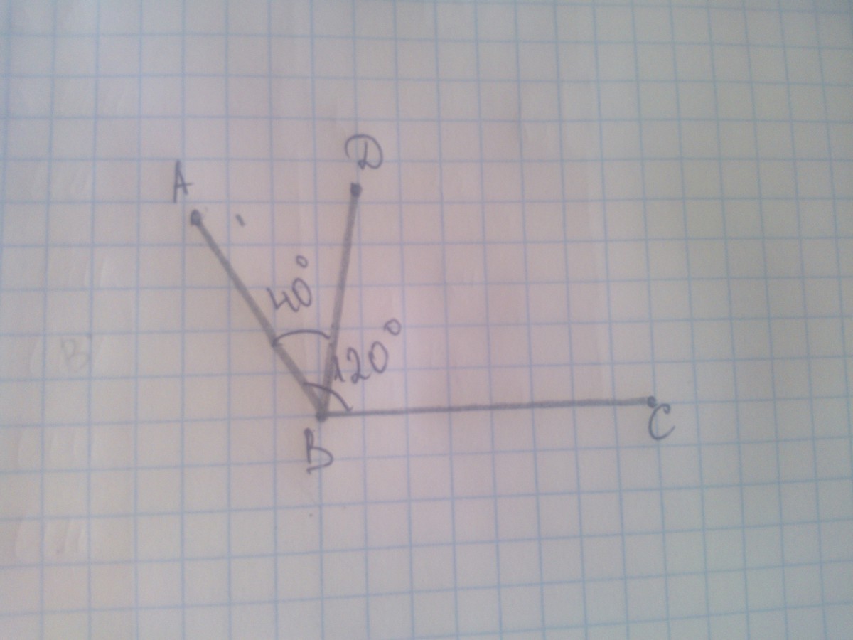 Постройте угол ABC и проведите внутри угла луч BD так, чтобы ABC = 120°,ABD = 40°. я вас очень прошу помогите мне !