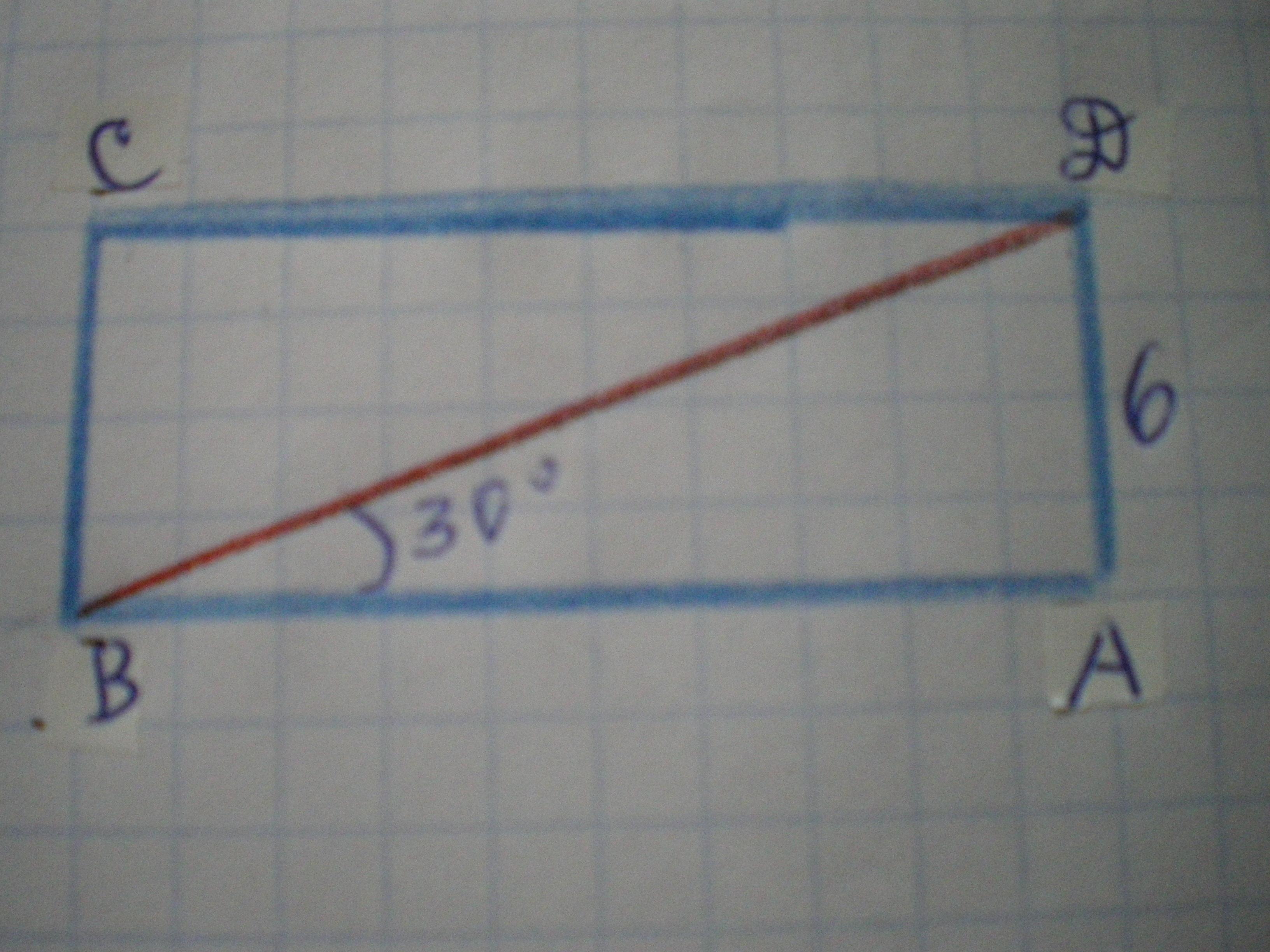 Дано: ABCD - прямоугольник, ∠ABD=30°, AD=6 см. Найти АС и ВD.