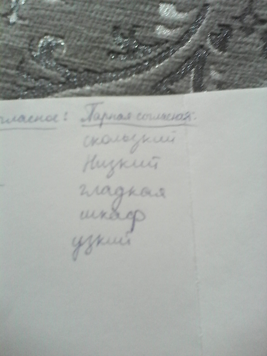 3 группа:скользкий,низкий,гладкая,шкаф,. узкий.