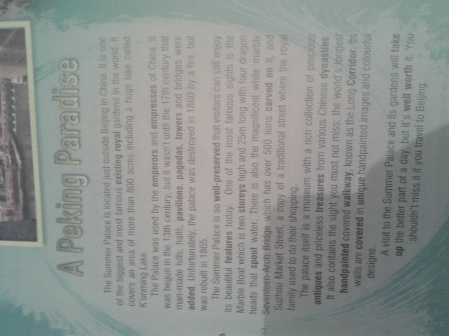 Пекин Рай Летний дворец расположен в непосредственной близости Being Китае. Это один Это из самых больших и большинство существующих королевские сады Inthe слово известный занимает площадь более 800 акров, включая огромного озера под названием более Куньмин озеро дворец был использован императоров и императриц Китая было начато в 13 веке, но это не было 'т до 17-го века, которые были добавлены искусственные холмы, залы, павильоны, пагоды, башни и мосты К сожалению, дворец был разрушен в 1860 году частот, но был восстановлен в 1865 году Летний дворец так хорошо сохранившийся, что посетители могут стил насладиться его прекрасные черты сегодня является одним из самых известных sghts является Мраморный Лодка что в два этажа в высоту и 25 м длиной т-й четырех драконов голову, что носик водой. Существует также великолепный белый мрамор Семнадцать-Арки моста, который имеет более 500 львов, вырезанные на нем и Сучжоу Маркет-стрит, копия традиционной улице, где королевская семья привыкли делать свои покупки Сам дворец музей с богатой коллекцией precous антиквариат и бесценные сокровища из различных китайских династий также содержит виду вы не должны пропустить: длинная расписанную крытый переход в мире, известный как стены длинного коридора TS покрыты уникальными расписанную изображений и cooudu проектирует Посещение Летнего дворца и его садов возьмет на себя большую часть дня, но это того стоит. Вы не должны упустить его, если вы путешествуете в Бытии