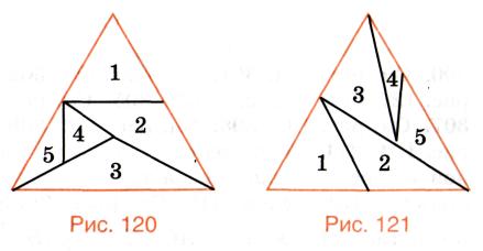 разрежьте равносторонний треугольник на пять различных равнобедренных треугольника
