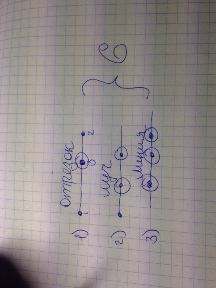 Скорее всего он начертил прямые линии и на одной поставил 2 точка на коцах,а одну посередине напимер(а елси поставить точки на кончах линии то это отрезок),на второй он поставил 1 точку в начале,и это уже луч,а остальные две точки в середине напимер,а на третьей линии он поставил все 3 точки в середине)))