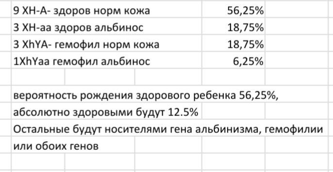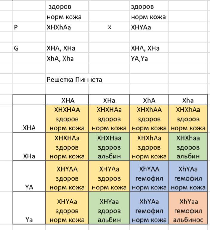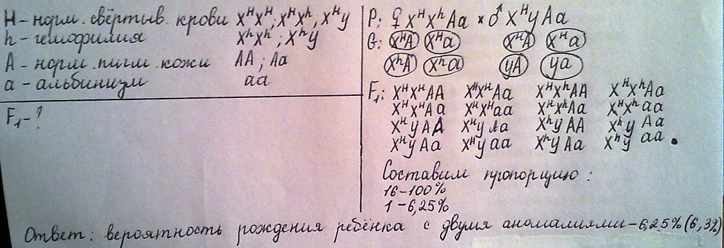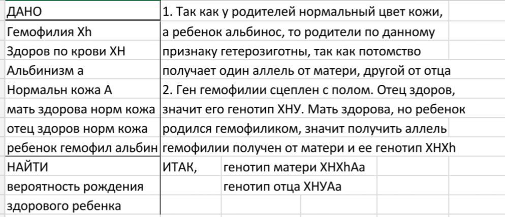 Гемофилия-рецессивный признак,сцеплённый с х-хромосомой.Альбинизм-рецессивный аутосомный признак.У супружеской пары нормальной по этим признакам,родился ребёнок с обеими аномалиями.Какова вероятность рождения в этой семье здорового ребёнка.