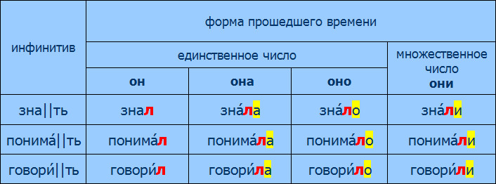 вот тебе табличка по форме прошедшего времени
