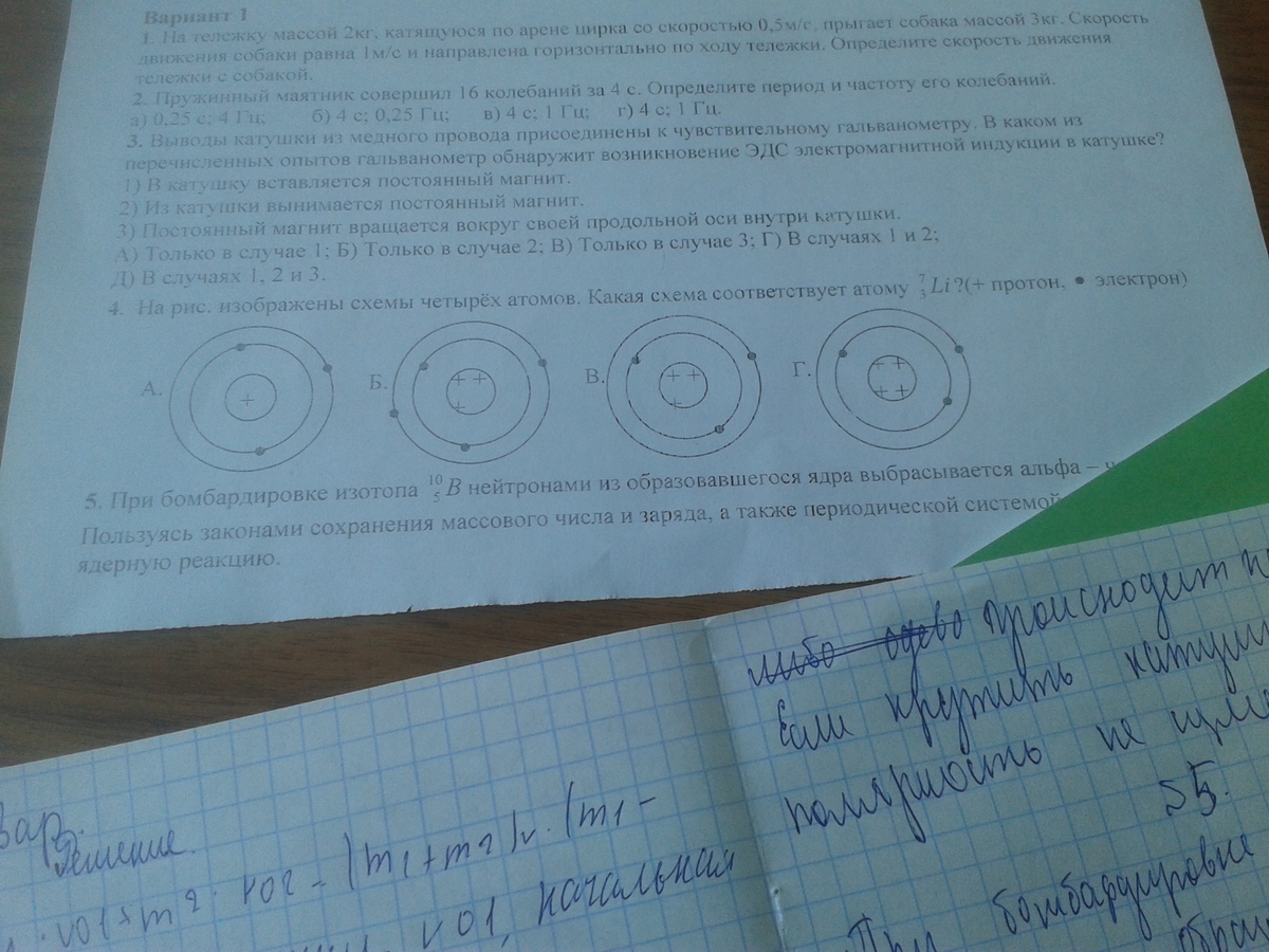 В атоме данного лития 3 протона (имеющих заряд +) и 3 электрона вращающихся по орбитам (имеющих заряд -). Из рисунков подходит В, там в ядре три плюсика и три электрона на орбитах