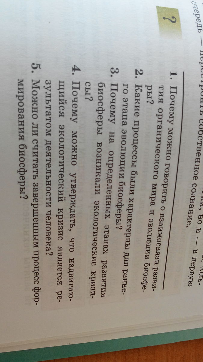 1) Биосфера — не только сфера распространения жизни, но и результат ее деятельности. Начиная с момента зарождения, жизнь постоянно развивается и усложняется, оказывая воздействие на окружающую среду, изменяя ее. Таким образом, эволюция биосферы протекает параллельно с историческим развитием органической жизни.