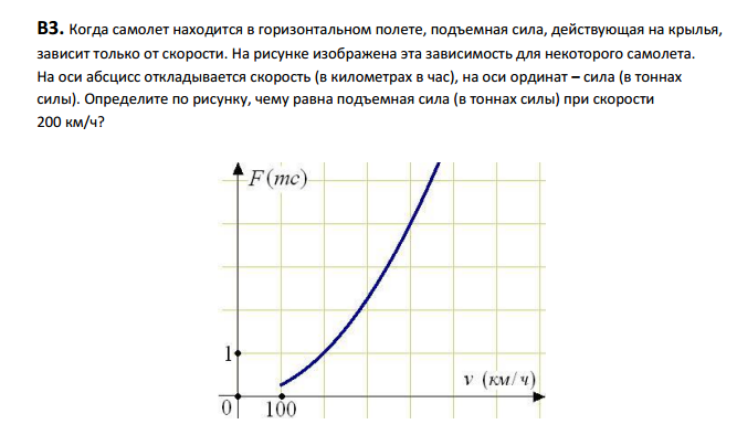 находишь на оси абсцисс (ОХ) нужное значение 200 км/ч, поднимаешься вертикально до пересечения с графиком, затем горизонтально до оси ОУ, получается сила=1
