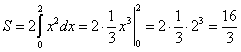 Данная криволинейная трапеция симметрична относительно оси ординат, поэтому достаточно вычислить площадь её правой половины и результат домножить на 2.