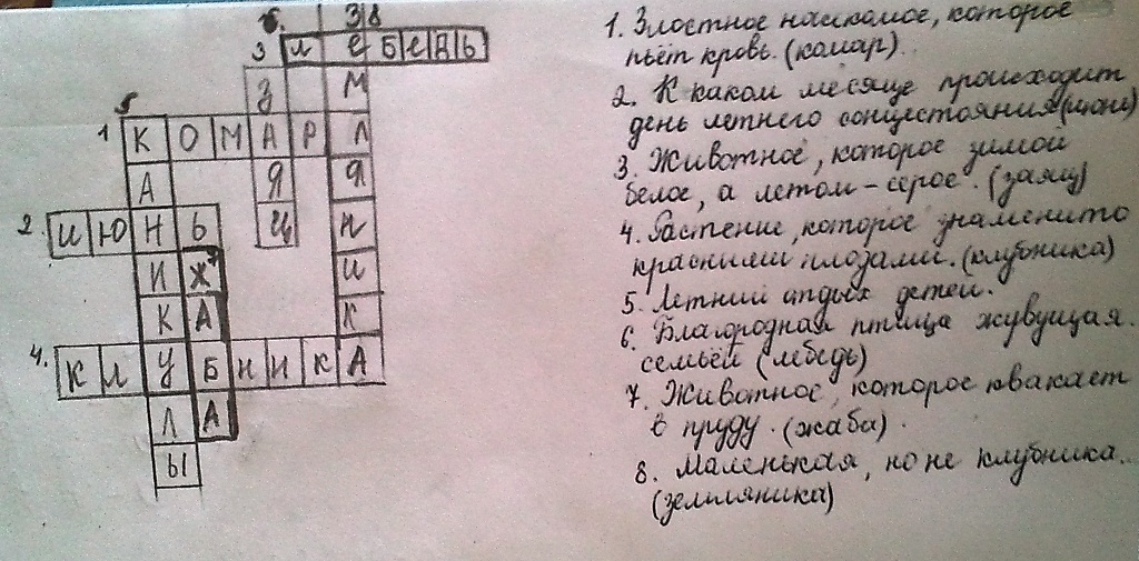 Ребят, помогите..... Брату Надо сделать Кроссворд на тему "Лето", а мне в голову ниче не лезет....... ПОМОГИТЕ ПОЖАЛУЙСТА!!!!!!