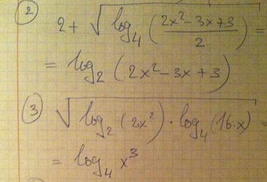 3. sqrt(log2(2x^2)*log2(16x)/log2(4))=sqrt(1/2(1+log2(x^2))(4+log2(x));