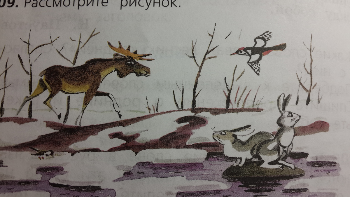 Однажды в лесу произошла такая история . Лед на реке почти оттаял ,а два зайца которые бежали от голодной лисицы спрыгнули на одну из льдин. Дятел летевший после обеда увидал это зрелище и сообщил все Лосю Ивановичу . Тот пришел и стал думать план который помог бы им выбраться из неловкой ситуации.Наконец Лось Иванович придумал план и вытащил ребят с речки. С тех пор зайцы знали что спрыгивать на льдины не желают!