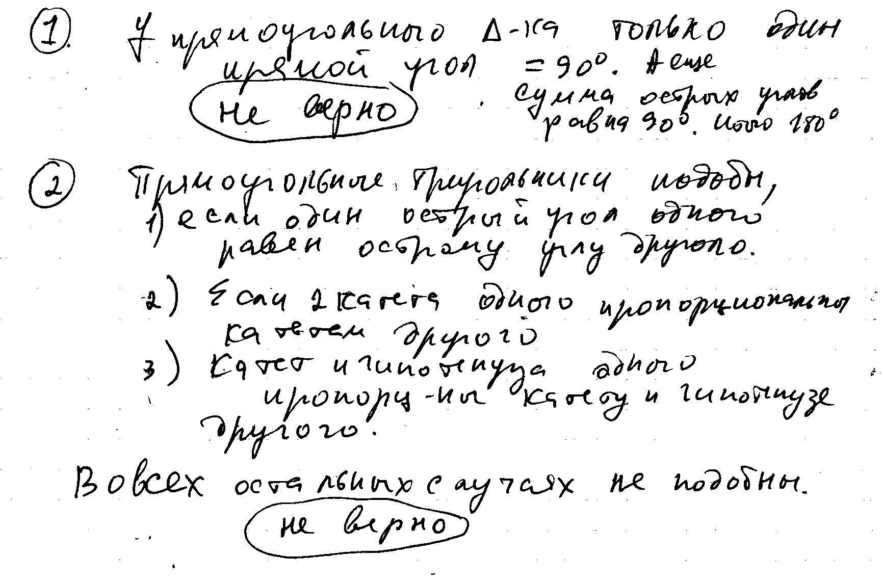 1) Сумма углов прямоугольного треугольника равна 90 градусов.