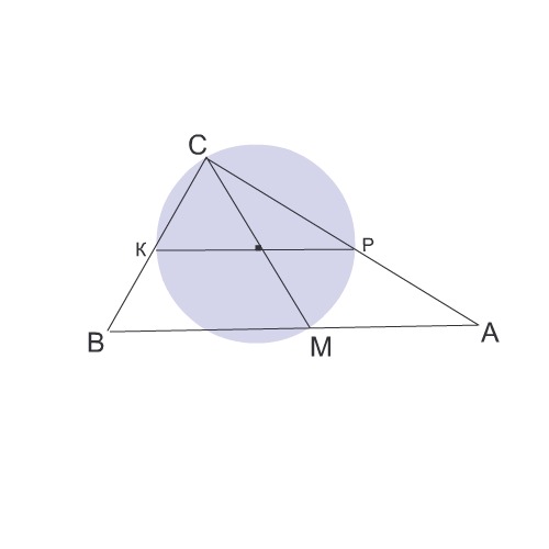 Длина медианы СМ треугольника АВС равна 5 см. Окружность с диаметром СМ пересекает стороны АС и АВ в их серединах. Найдите периметр треугольника АВС, если его площадь равна 24 см2.