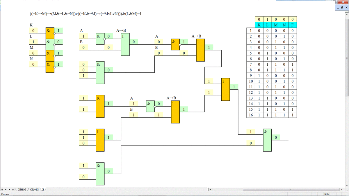 (((¬K→ M) → (M/¬L/¬N)) / ((¬K/ ¬M) → (¬M/ L / N))) / (L/M) = 1