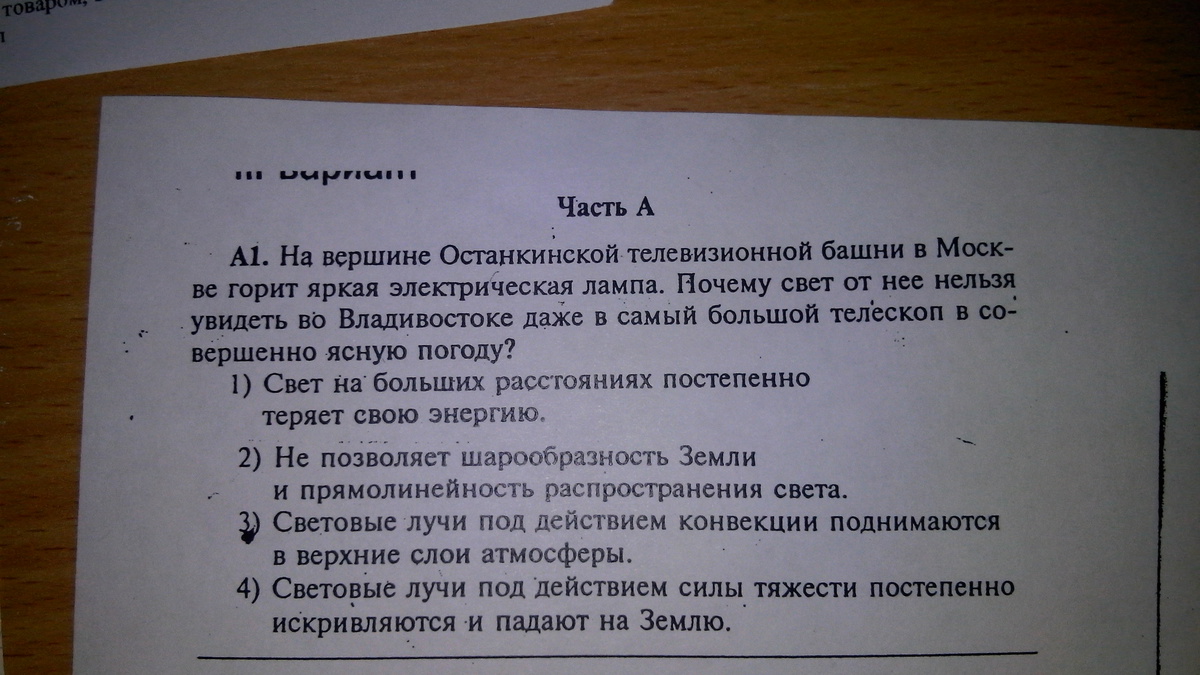 На останкинской телевизионной башни в Москве горит яркая электрическая лампа. Почему всет от нее нельзя увидеть во Владивостоке даже в самый большой телескоп в совершенно ясную погоду?
