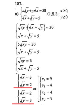 Т.о. получается совокупность двух решений: (9;4) и (4;9)