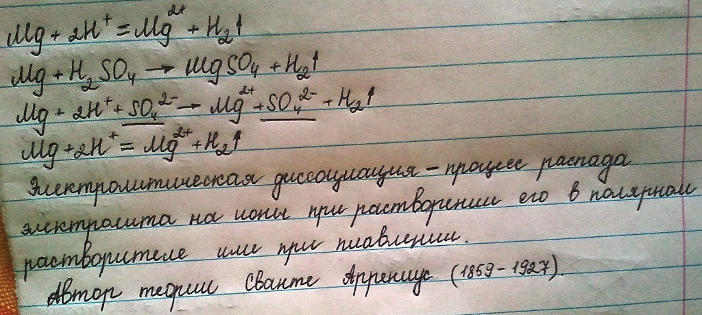 по ионному уравнению составьте полное ионное уравнение и молекулярное: Mg+2H+=Mg2+ +H2 Что называется электрической диссоциации?кто автор теории электрической диссоциации?