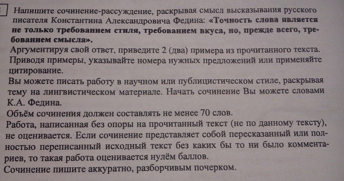 Смысл высказывания писателя К. А. Федина я понимаю так: точность-такое качество речи, которое требует от говорящего/пишущего соответствия фактов действительности и соответствия слов, употребляемых автором, их значениям, а также соблюдения грамматических норм. Докажу это на примерах из текста Крапивина.