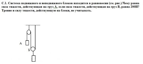 подвижного и неподвижного блоков находится в равновесии (см. рис.).Чему равна