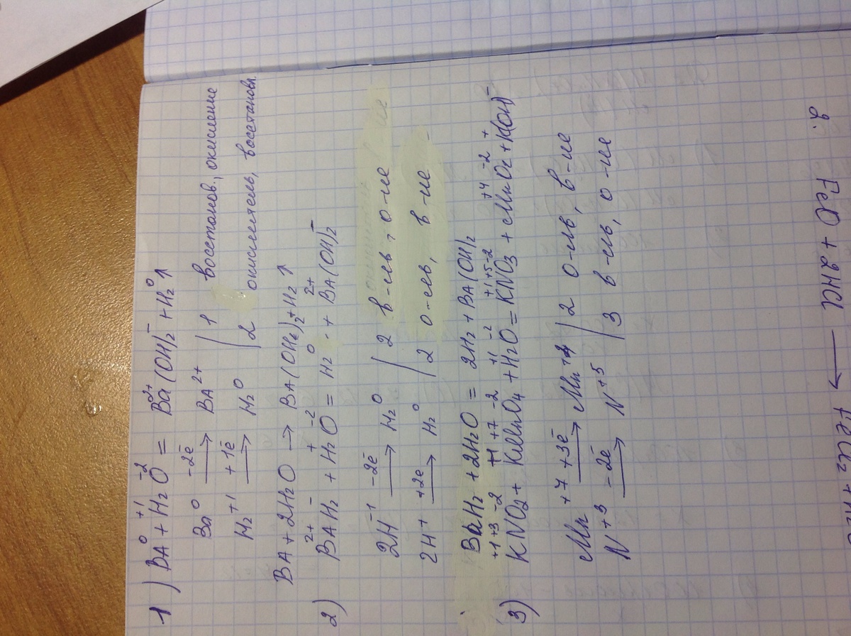 1)Ва+Н2О=Ва(ОН)2+Н2 стрелка вверх
