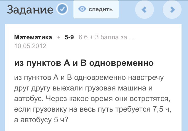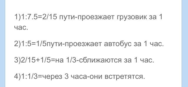 И автобусу и грузовику надо преодолеть одно и то же расстояние. Это расстояние можно принять за 1 (весь путь). И если автобусу, например, на весь путь надо 5 часов, то за час он пройдет 1/5 часть всего пути. Это и есть его скорость, каково бы ни было расстояние, которое мы приняли за 1. Таким же образом узнают и скорость грузовика. сложив эти скорости, получаем скорость сближения, а разделив путь (опять 1) на скорость, получим время, которое пройдет до встречи.