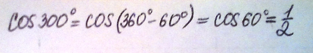 cos300=cos(360-60)=cos60=1/2