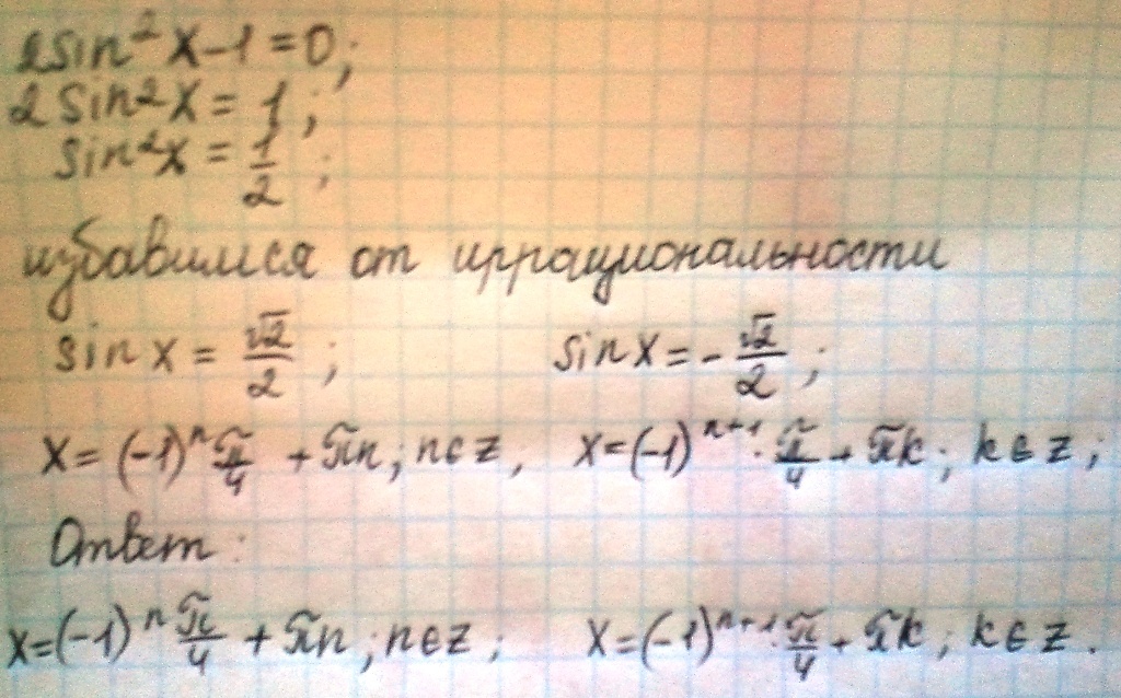 2(sinx)^2 -1=0