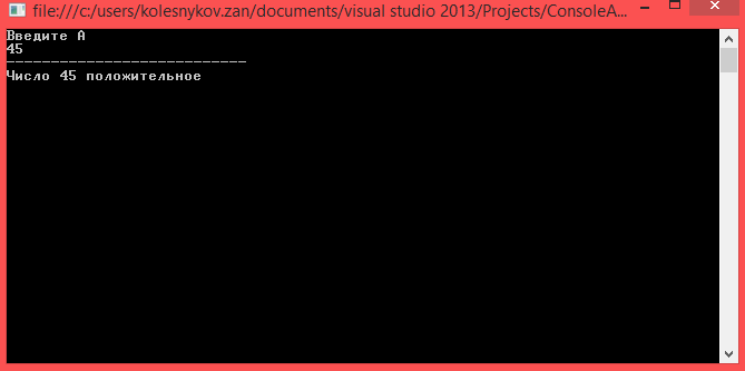 Составить алгоритм и написать программу. Пользователь вводит число А, программа определяет положительное число или отрицательное. Ноль не учитываем.