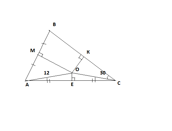 В тоеугольнике АВС серединные перпендикуляры к сторонам АВ и АС пересекаются в точке О, АО=12 см,<ВСО=30°. Найдите расстояние от точке О до стороны ВС.