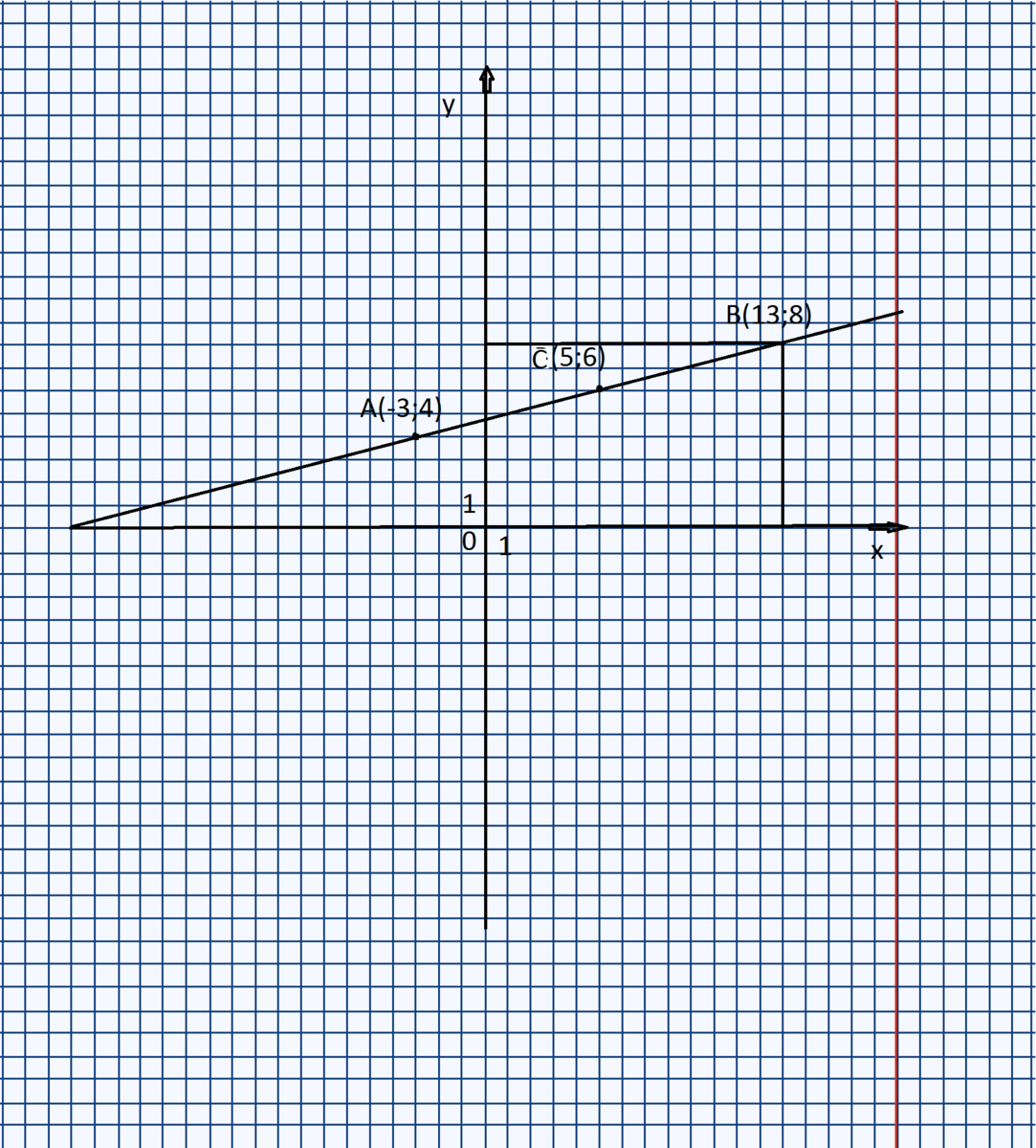 какой должна быть абсцисса точки В с ординатой у=8, если эта точка лежит на прямой, проходящей через точки А(-3,4) и С(5,6)