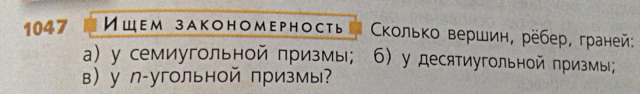 N-угольная призма- N граней, N*2 вершин, N*3 ребер