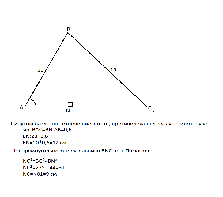 В прямоугольном треугольнике ВNC нам известны гипотенуза и катет.