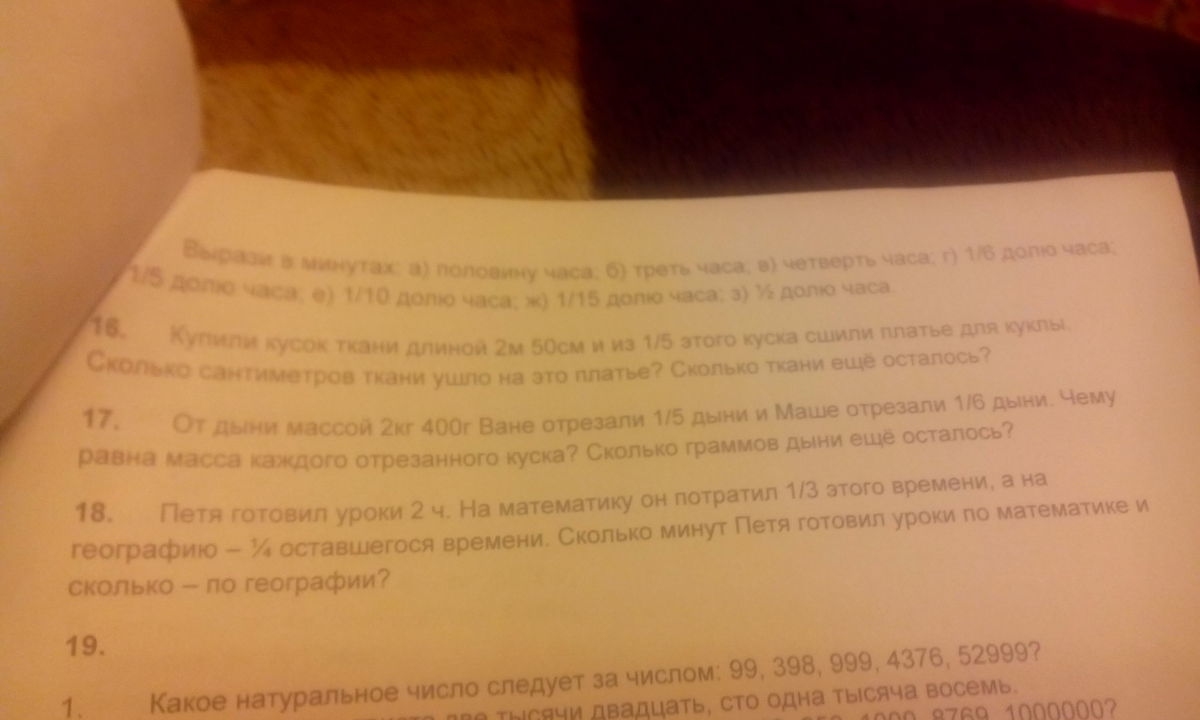 #15 это надо выразить в минутах а) половину часа,б)треть часа;в)четверть часа;г)1/6 долю часа;д)1/5 долю часа;е)1/10 долю часа;ж)1/15 долю часа;з)одна вторая долю часа
