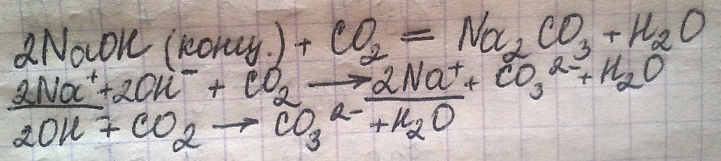 2Na+ + 2OH- + CO2 = 2Na+ + CO3 2- + H2O