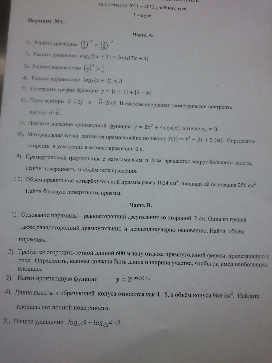 5) ОДЗ: x>0, x не=1. Упростим: log от3 по основанию х + log от16 по основанию х=2