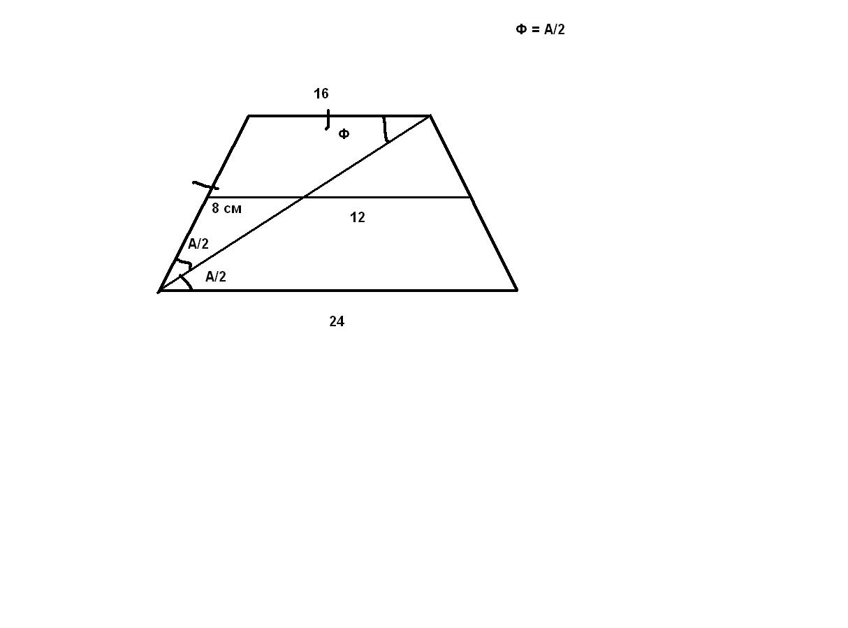 отсюда..верхнее основание = 16, а нижнее 24 .