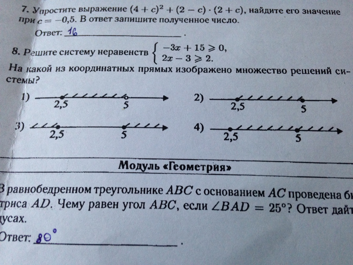Решите систему неравенств ( см фото № 8). На какой из координатных прямых изображено множество решений системы?