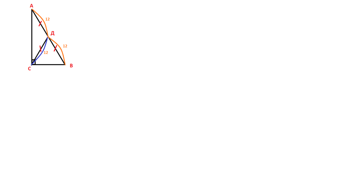 Из вершины прямого угла к гипотенузе прямоугольного треугольника проведена медиана. Определите длину гипотенузы, если длина медианы равна 12 см.