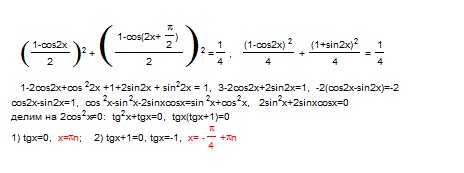 Использованы формулы понижения степени, основное тождество, формулы двойного угла, формулы приведения