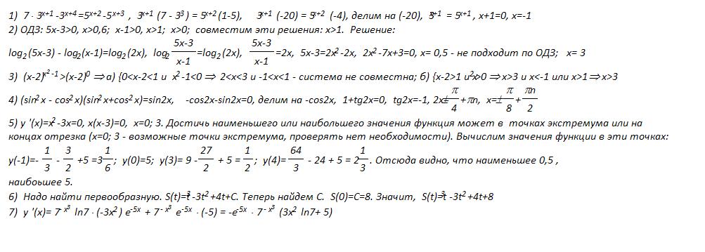 использованы свойства степени, свойства логарифма, тригонометрические формулы, формулы дифференцирования, интегрирования