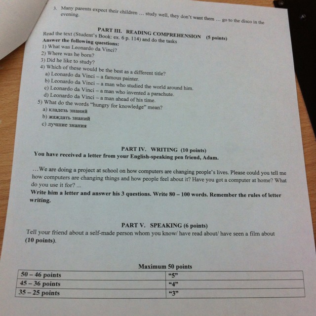 Помогите сделать PART IV.WRITING
