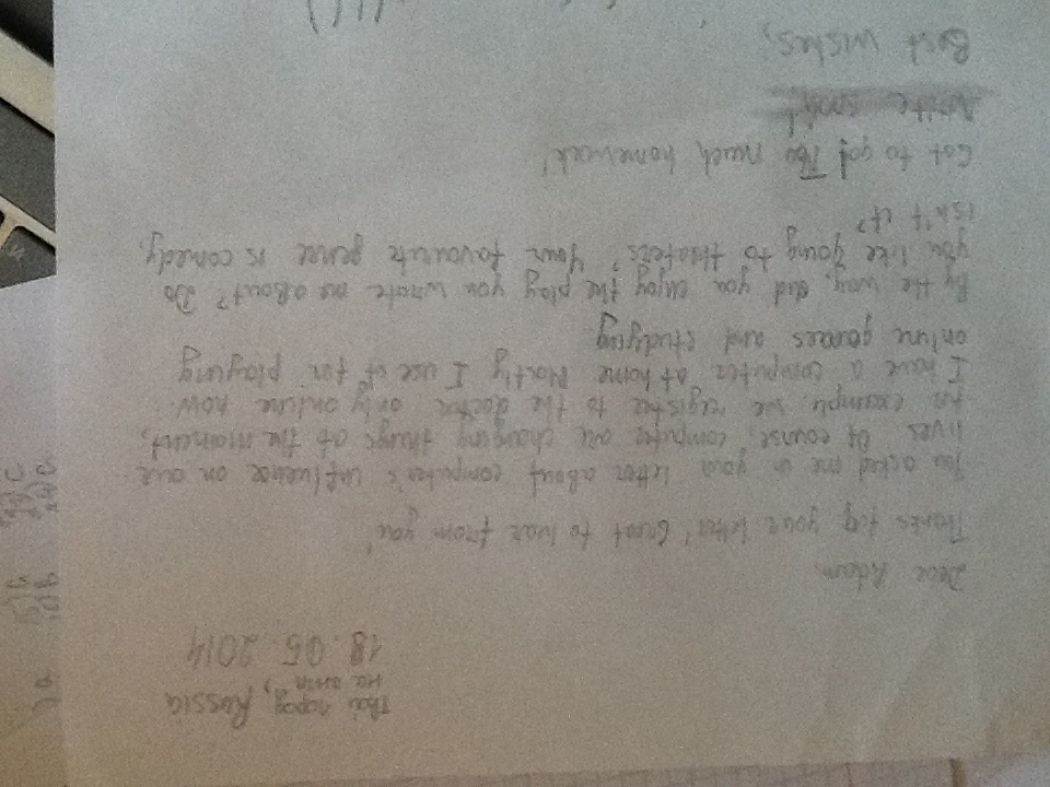 Написал тебе письмо, надеюсь, что ты сможешь перейти в следующий класс.
