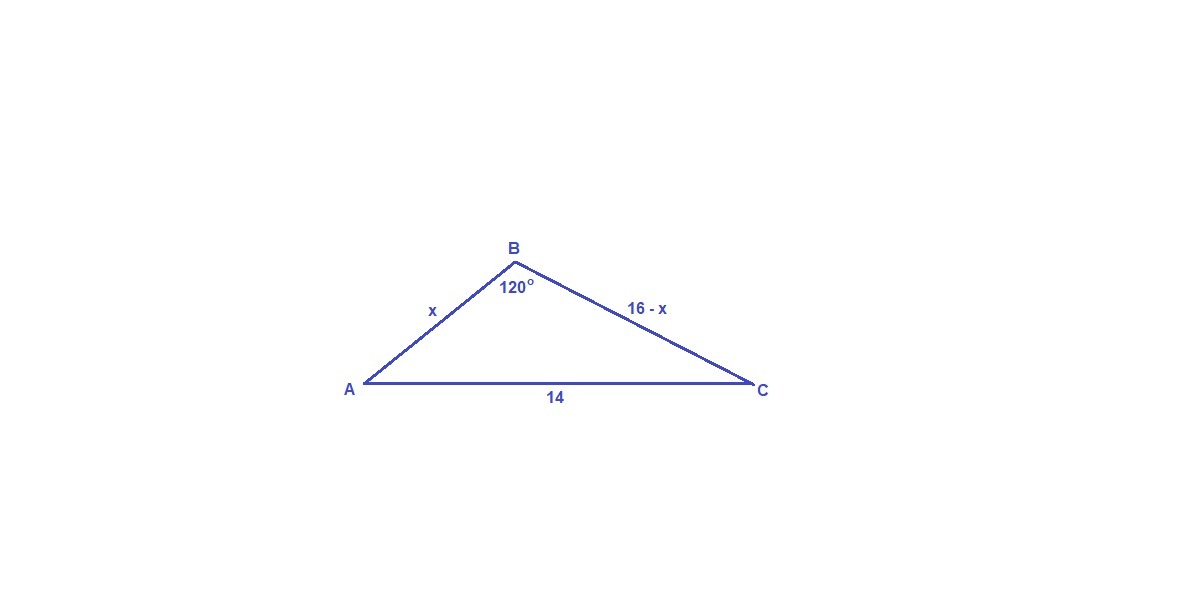 196 = x² + (16 - x)² - 2 · x · (16 - x) · (- 1/2)