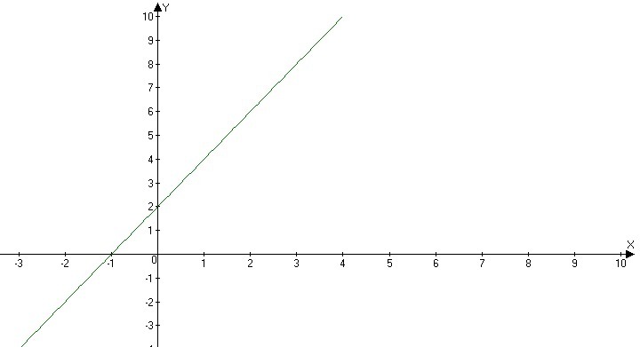 Графиком функции является прямая, которая проходит через точки (0;2), (-1;0)